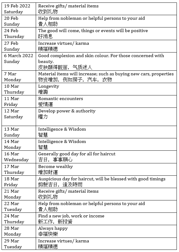Here is it!! The auspicious hair cut days for FEB and MARCH 2022!!!