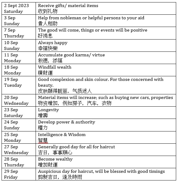 Hey there, get ready to rock your new look! Ok, here are the lucky days to snip those locks in September 2023! πβοΈ hehehehh ok i try to do it wayyyyy in advance!!! Look to the previous post for the auspicious days for Aug ok!!!